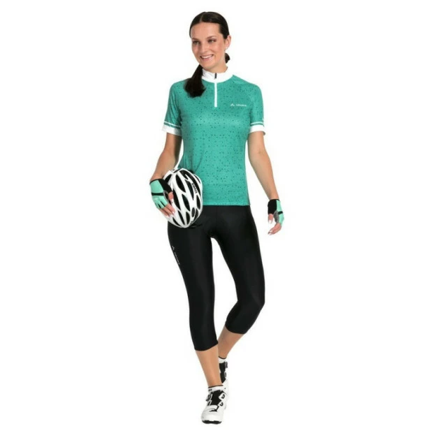 Le corsaire femme Vaude Advanced 3/4 Pants IV est axé sur la performance. Fabriqué à base de polyamide recyclé, il est doté d’un rembourrage de fessier confectionné dans un mélange de matériaux récyclés et d’origine biologique. Sans couture, la peau de chamois Advanced Cycling Green garantit une coupe bien ajustée ainsi qu’une respirabilité optimale et assure un haut niveau de confort en selle grâce à la combinaison de mousses de différentes densités. L’ensemble conçu dans le respect de l’environnement présente une coupe en 6 lés ergonomiques ainsi que des coutures et une ceinture plates. Ce pantalon n’offre ainsi pas seulement un confort maximal sur le circuit, mais contribue aussi à la préservation de l’environnement. Il bénéficie notamment du label Vaude Green Shape, garantissant un produit écologique, fonctionnel et fabriqué dans des matériaux durables.