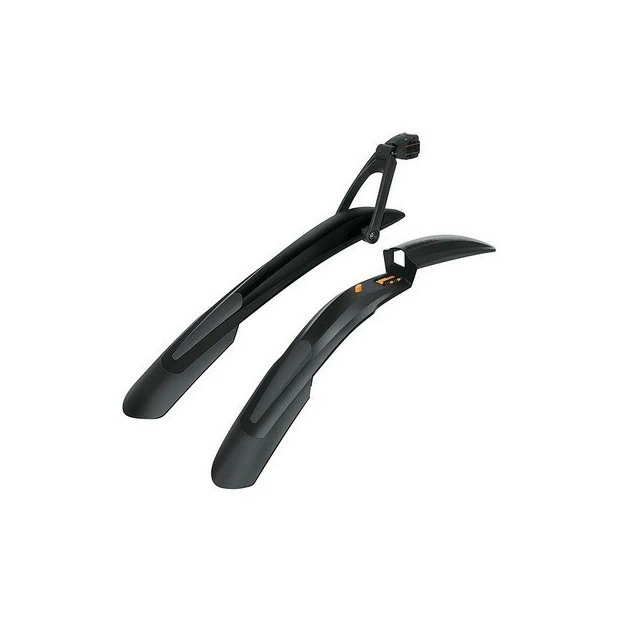 Le jeu de garde-boue SKS Blade est spĂ©cifique au VTT. L’avant offre une plus grande couverture et est compatible avec les fourches Ă suspension. Il intègre un système de fixation rapide efficace pour un montage et un dĂ©montage faciles. Le Shockblade est complĂ©tĂ© par le X-Blade arrière hautement rĂ©glable, utilisant un design Ă double pivot pour personnaliser l’ajustement. Grâce au système de largage rapide Quick Release, il peut ĂŞtre montĂ© sur presque toutes les tiges de selle sans outils et en quelques secondes.
